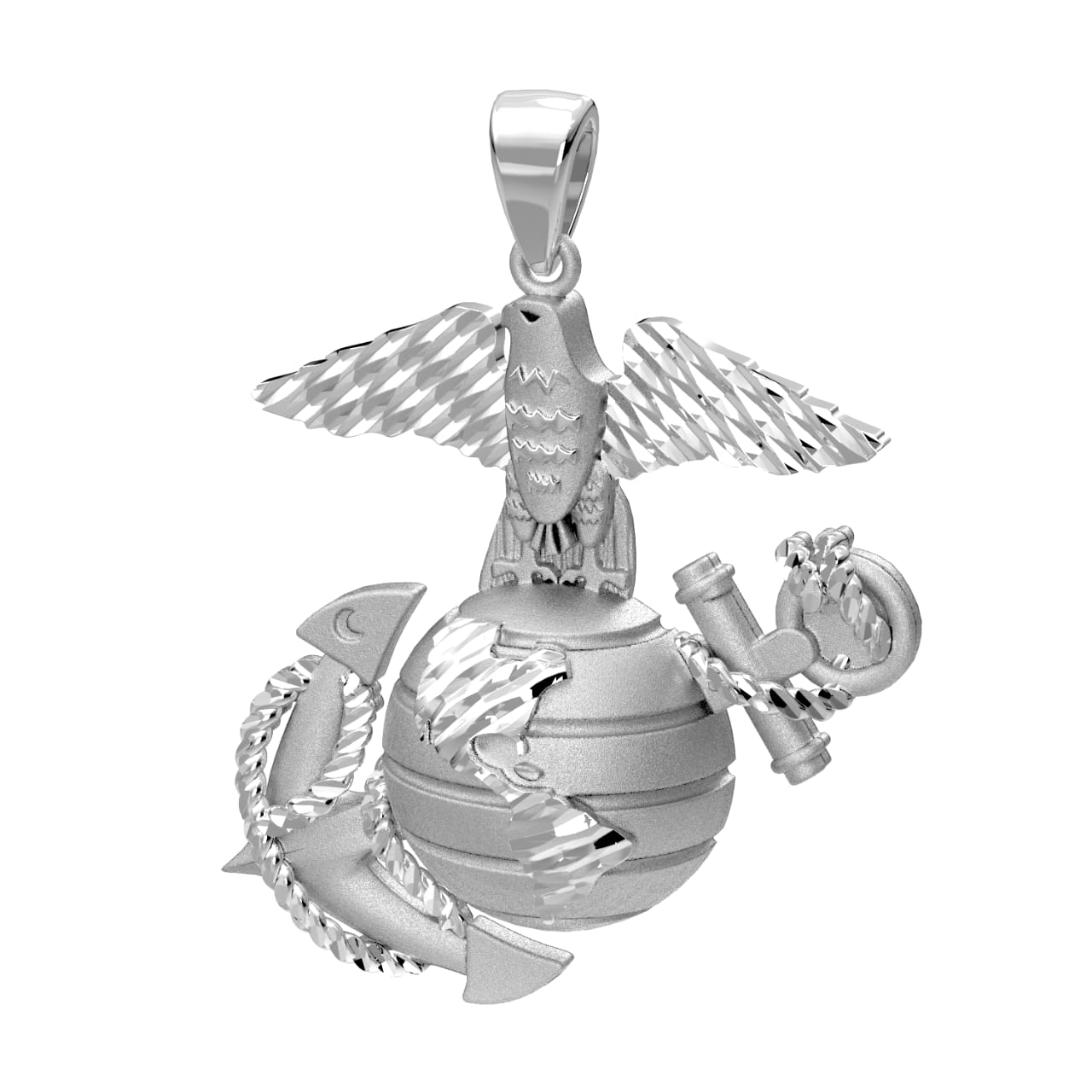 Large 925 Sterling Silver, 10k or 14k Yellow Gold US Marine Corps Eagle, Anchor & Globe Pendant